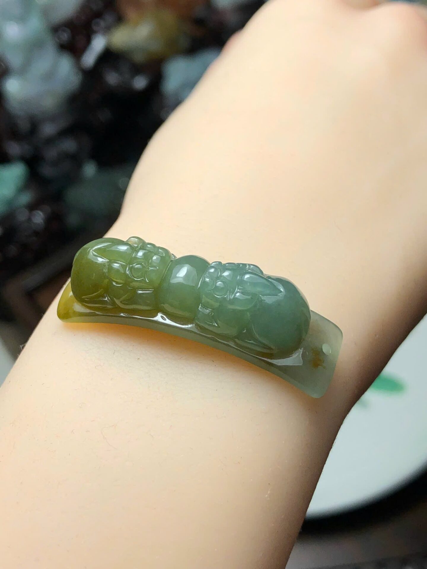 V784 khánh tay Song Tỳ Hưu cẩm thạch A Myanmar