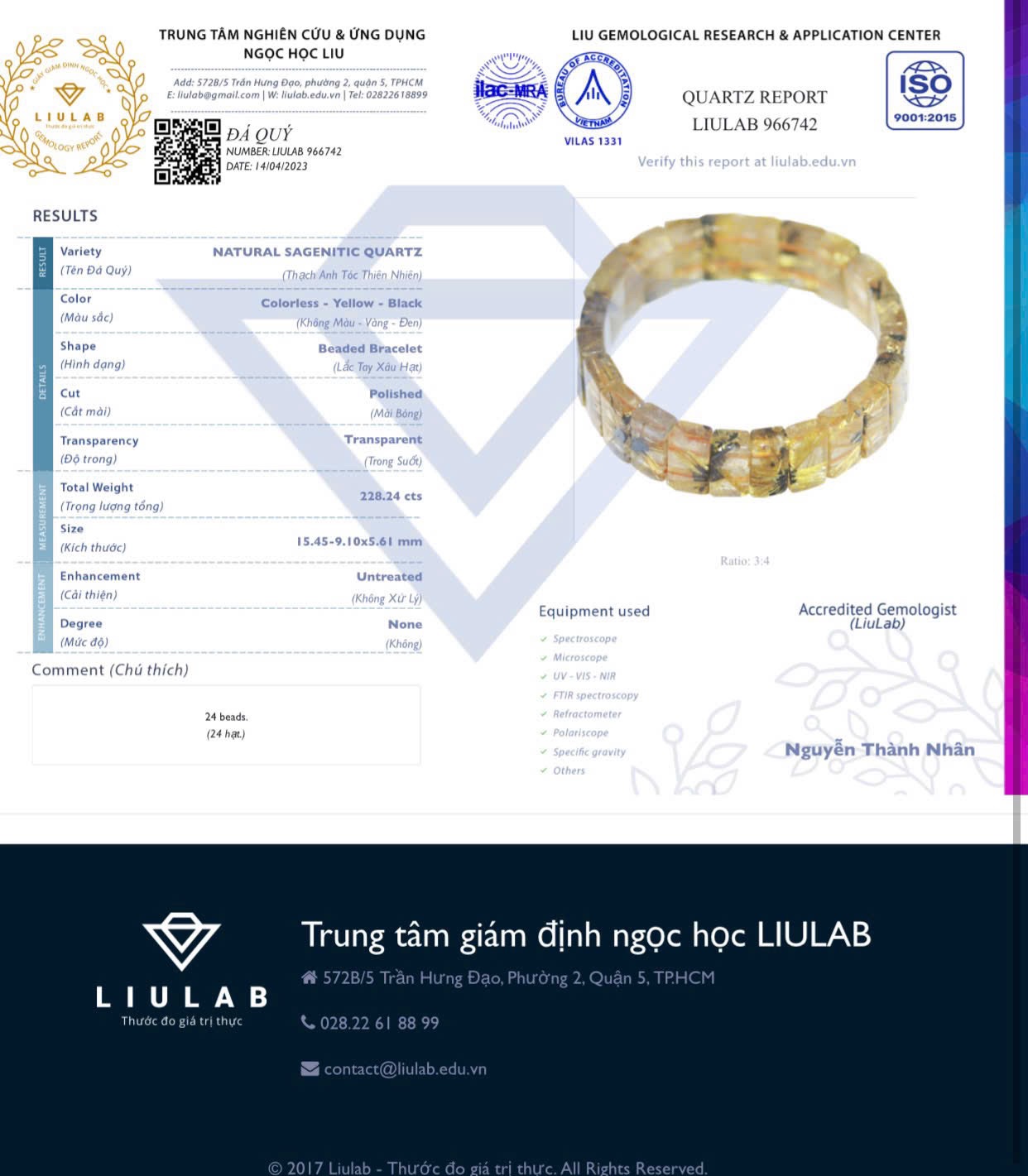 Vòng bản hoa thị tóc vàng đã kiểm định Liulab 966742